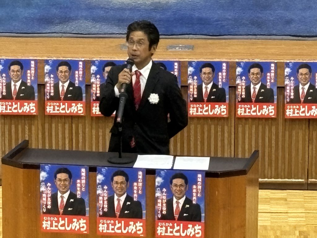 10月19日(土)18:30~観月台文化センターにて「村上としみち総決起大会」を開催しました。約400人の参加をいただき、盛大に開催することができました。ありがとうございました。