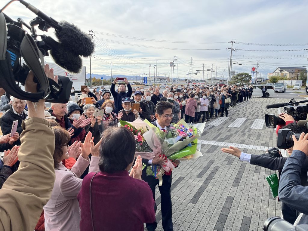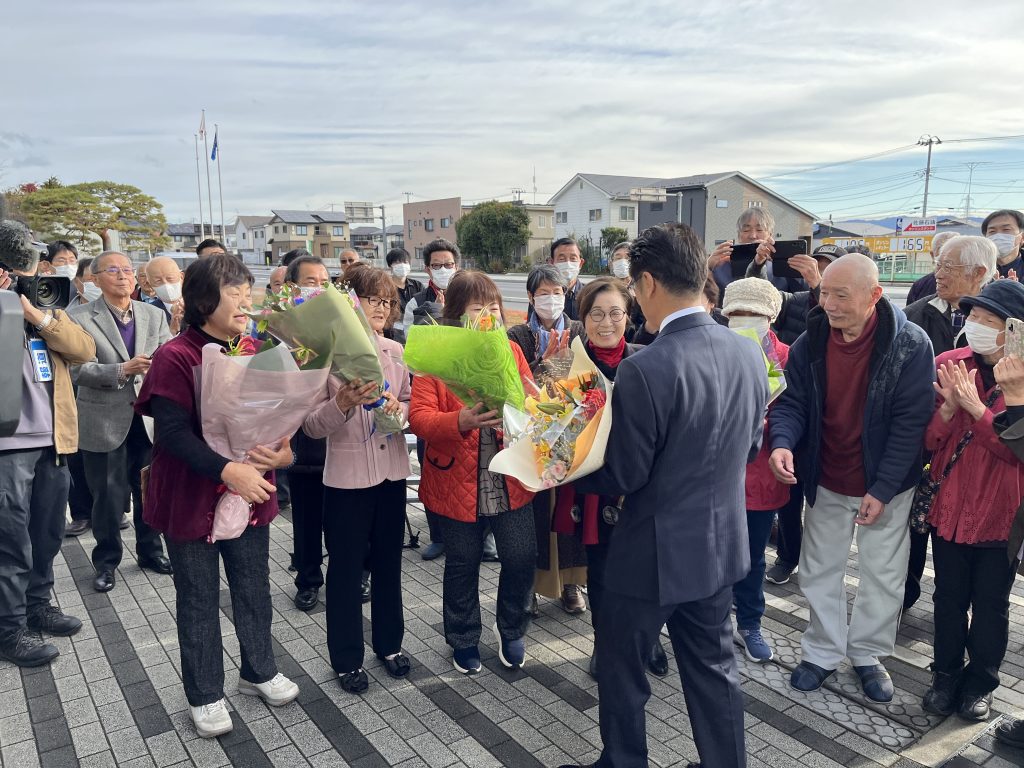 初登庁 投稿日: 2024年11月29日 投稿者: STAFF 11月27日(水)9:00 初登庁の日となりました。 晴天に恵まれた早朝から、多くの支援者や職員、報道陣の方々らに拍手とともに迎えられました。 支援者の方々からの花束贈呈 皆さんの歓喜の輪に包まれながら、華々しい初登庁となりました。 ご参加いただきありがとうございました。